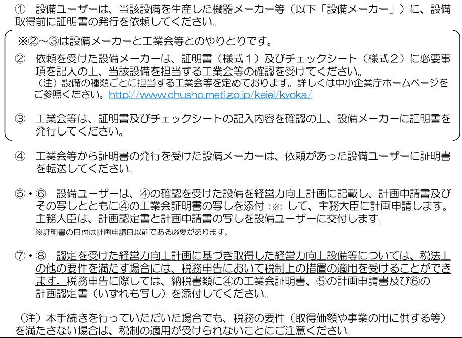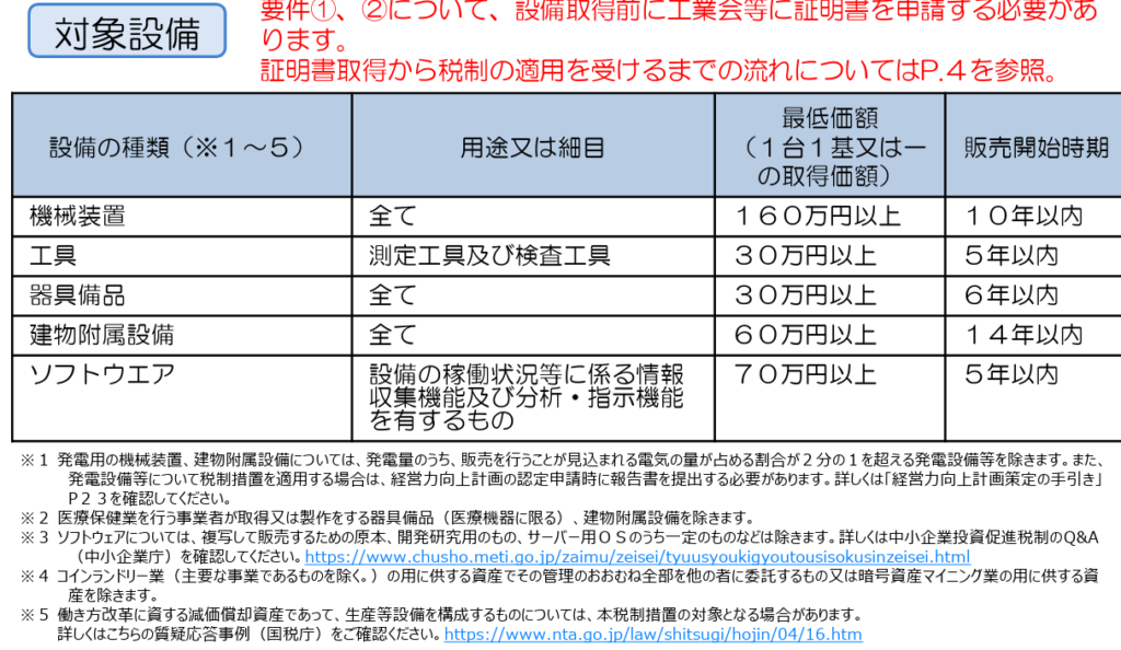 注意点としては、後述しますが申請のさいには事前に設備が要件に合致することを証明するため、工業会等に証明書を申請する必要があることです。
