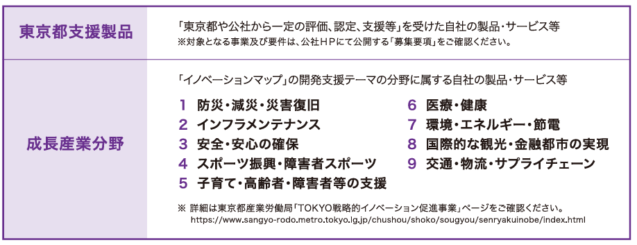 東京都支援製品のうち「東京都や公社から一定の評価、認定、支援等」には、経営革新計画で承認された製品やサービスも含みます。
