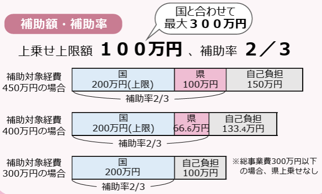 | 補助率 | 国の補助金と合わせて3分の2まで |