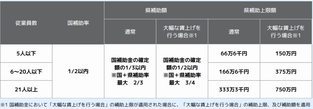 | 補助額の計算方法 | 国の補助金の算定基礎額から、国の補助金を差し引いた事業者負担分の2分の1 |